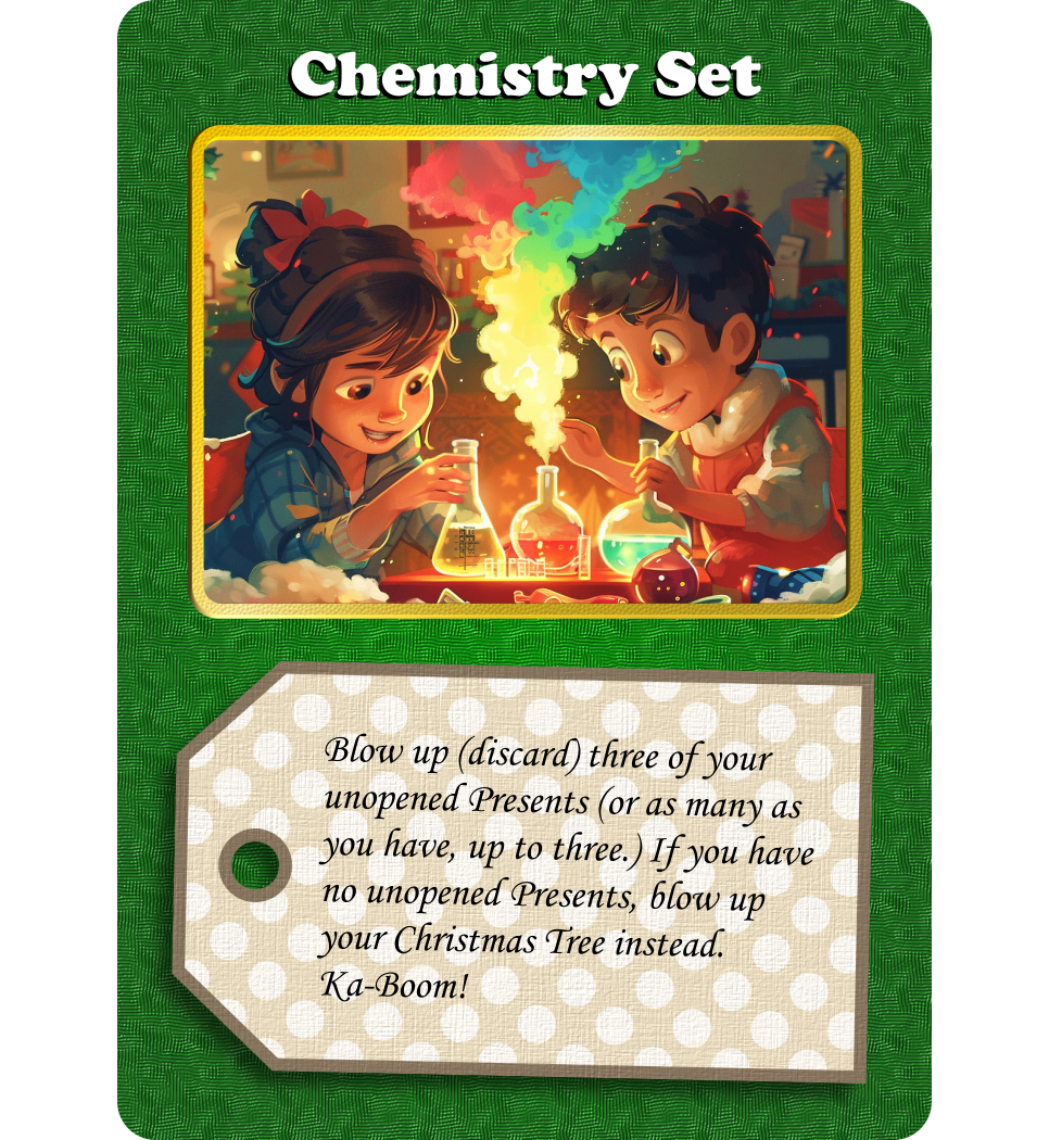Is it a game about the perfect Christmas, or a perfect game about Christmas? Both! Perfect for the whole family (ages 10 and up), this is a game of luck, skill, strategy, memory, and holiday cheer. It’s fun, funny, family-friendly, and it goes perfectly with those cookies and that crackling fire.